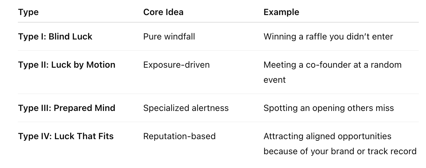 Here’s the thing about luck. It’s always falling. The real question is whether your umbrella is positioned to catch it.